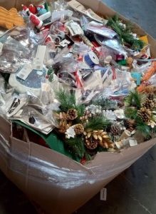 24 pallets of assorted Christmas merchandise from T@rget stores.  Over 80-90 percent of the merchandise is new.  Every load will be a massive assortment of tens of thousands of small to medium size items including decorations, ornaments, toys, wrapping paper, stockings and more!